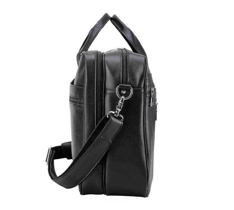 Conçu pour un usage quotidien, le Sac Ordinateur Homme Cuir Noir est doté d’une bandoulière amovible qui permet de le transporter aisément. Qu’il soit porté à la main ou en bandoulière, il s’adapte à toutes vos préférences, offrant une flexibilité de mouvement essentielle pour les hommes actifs.